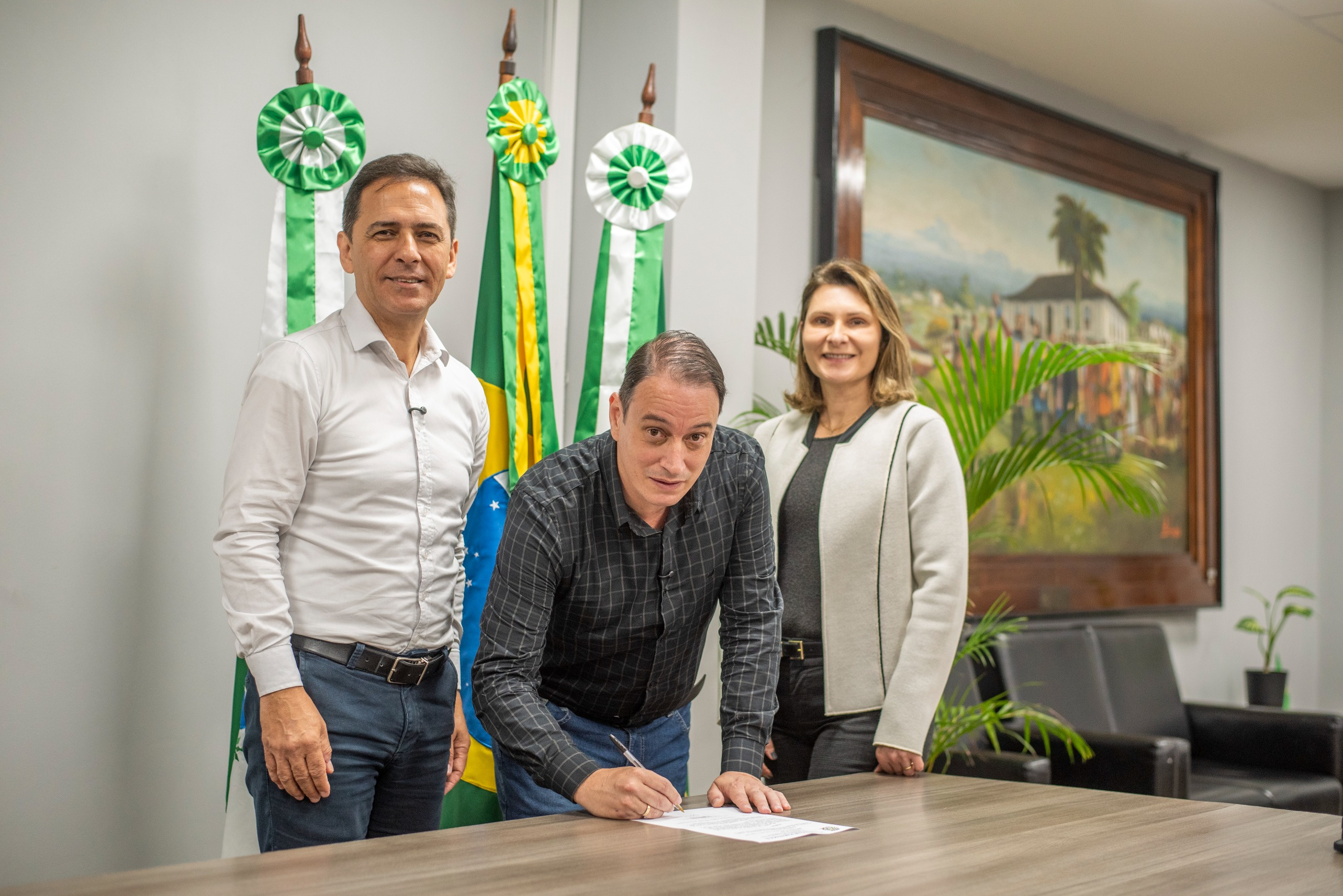 A assinatura do decreto de nomeação contou também com a presença do secretário de Governo, Thiago Campos, e do chefe de Gabinete, André Ferruci, que acompanharam o ato ao lado do prefeito Adriano Ramos e da vice-prefeita Fabiana Parro.
