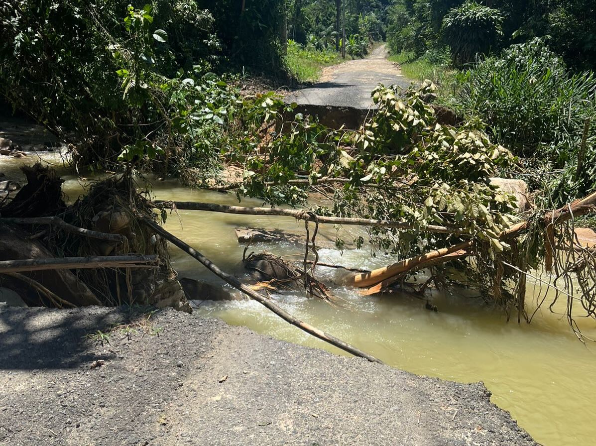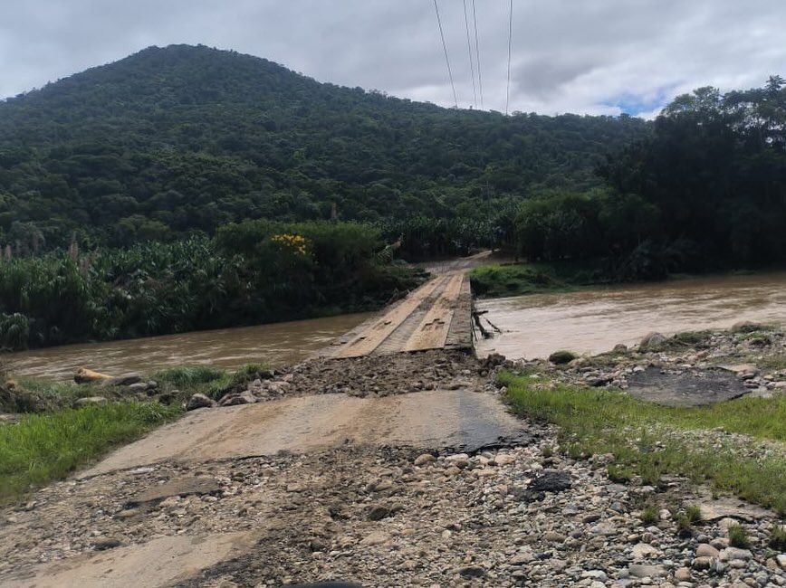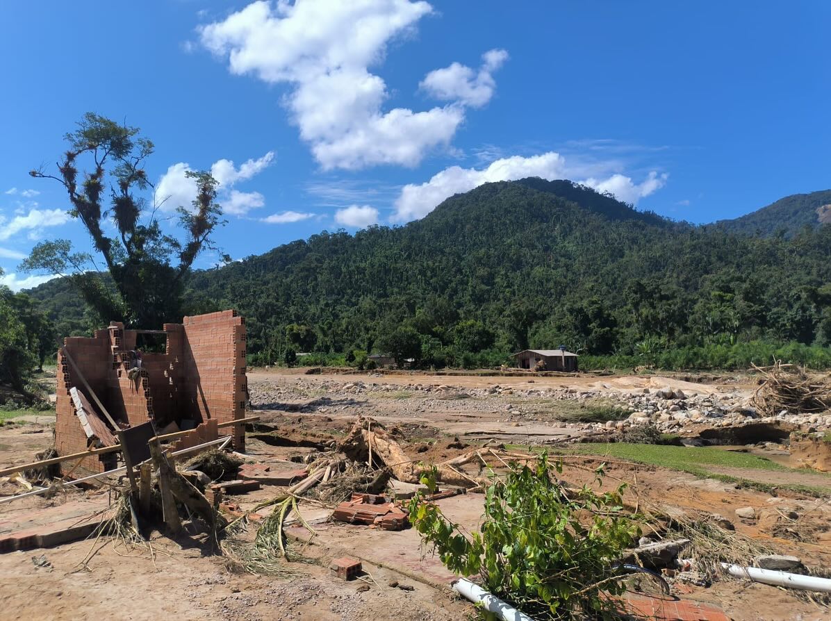 A infraestrutura viária também sofreu impactos severos. Estradas ficaram intransitáveis e pontes foram destruídas, isolando algumas comunidades. A ponte do Cubatão foi danificada, mas já foi restabelecida. No entanto, a localidade de Três Pinheiros segue sem acesso, pois a ponte foi completamente levada pela correnteza.