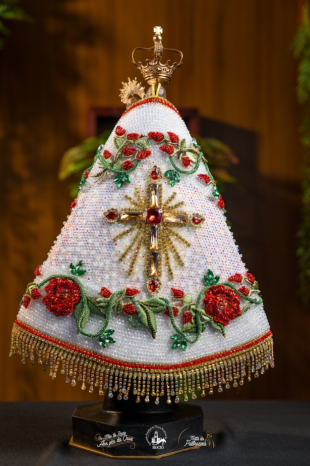 Neste ano, a imagem da Padroeira foi revestida com um novo manto confeccionado em cristais Swarovski e tchecos, representando o tema da festa de 2025: “Com a Mãe do Rocio aos Pés da Cruz”. Mais de mil fiéis acompanharam o ato, em clima de fé e emoção.