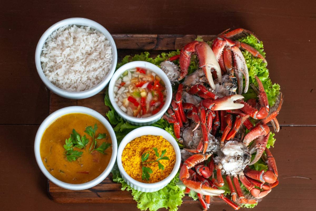 O festival reúne pratos tradicionais e receitas especiais à base de caranguejo, um dos principais símbolos da culinária local. O público encontra desde a tradicional dúzia de caranguejos até preparos diferenciados com carne do crustáceo, ampliando as opções gastronômicas oferecidas aos visitantes neste período.