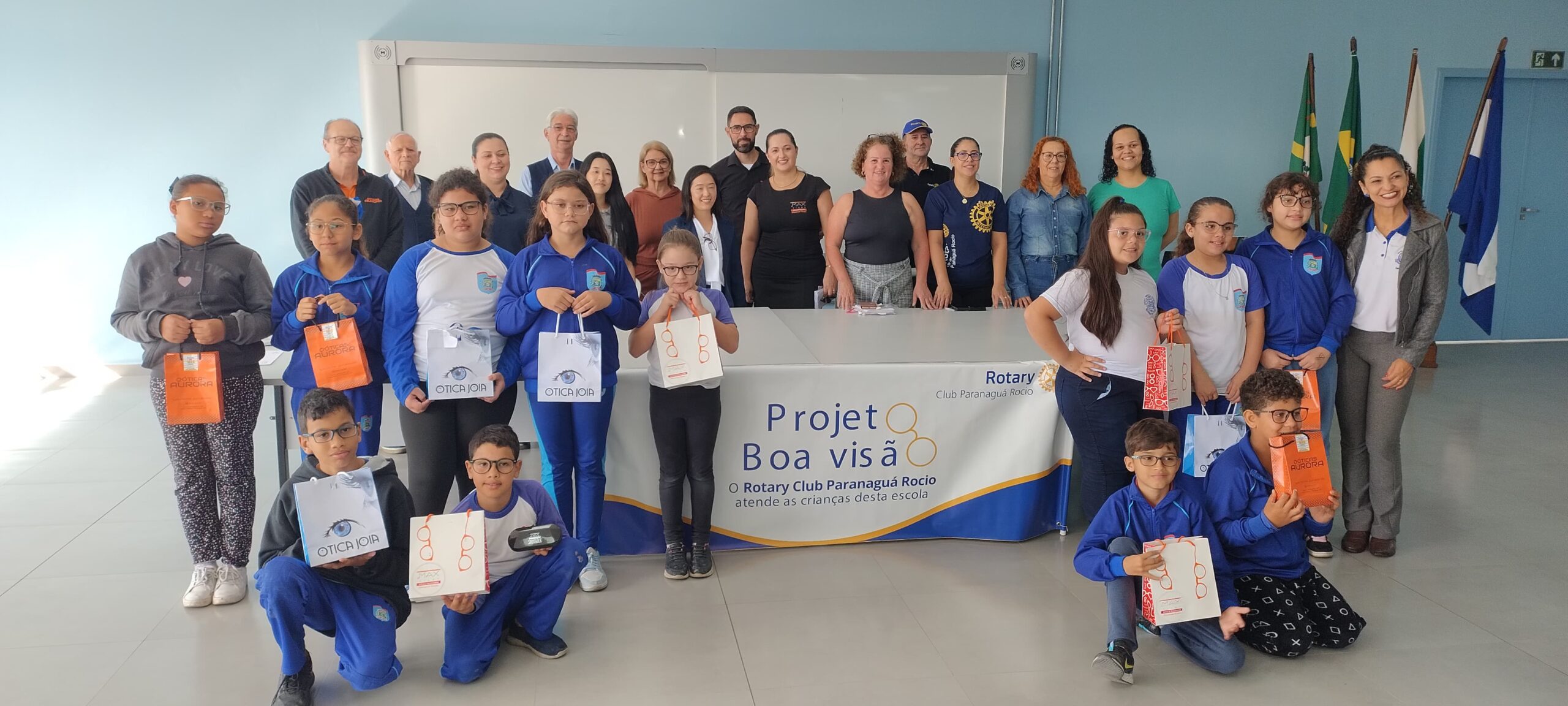Na manhã de quarta-feira (5), doze estudantes da Escola Municipal Nascimento Júnior, no Jardim Guaraituba, em Paranaguá, receberam gratuitamente óculos de grau, marcando a conclusão de mais uma edição do projeto Boa Visão. A iniciativa é promovida pelo Rotary Club Paranaguá-Rocio, em parceria com a Clínica Provisão e as óticas Joia, Aurora e Max Visão.