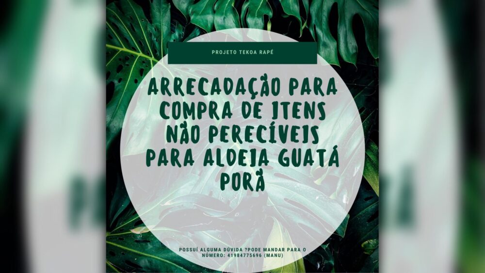 O Projeto Tekoa Rape, composto por estudantes e colaboradores comprometidos com causas indígenas, lançou uma campanha de arrecadação de alimentos e uma vaquinha solidária em prol da aldeia aldeia Guatá Porã, comunidade Guarani Mbya localizada na Ilha de Cerco Grande, em Guaraqueçaba (PR).
