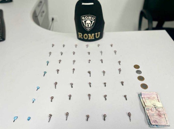 Com o abordado, que tentou fugir correndo, foram encontradas 39 pedras de crack e 4 porções de cocaína. O entorpecente estava embalado e pronto para ser comercializado.