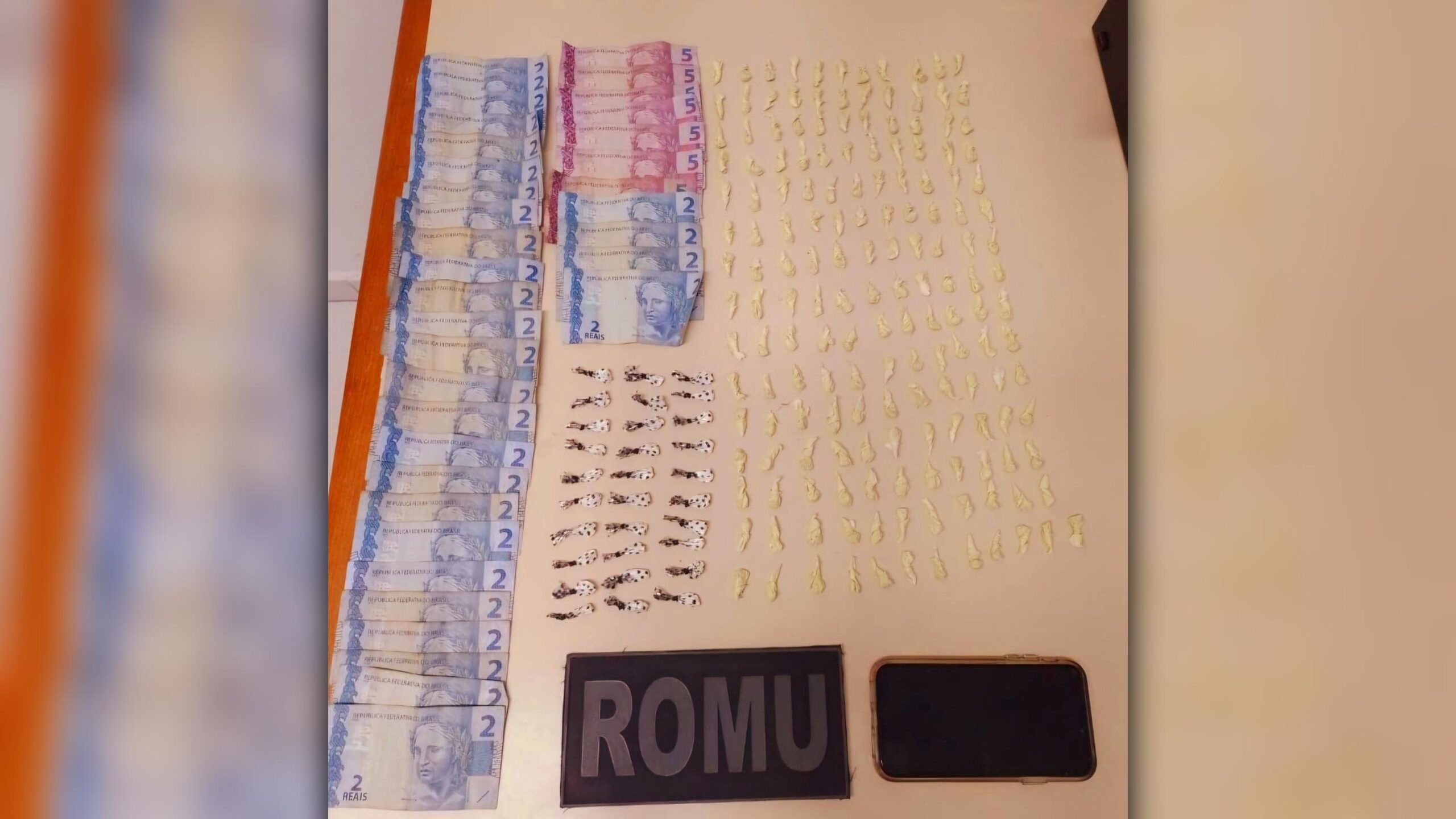 Dentro da sacola dispensada foram encontradas 160 pedras de crack e 30 porções de cocaína.
