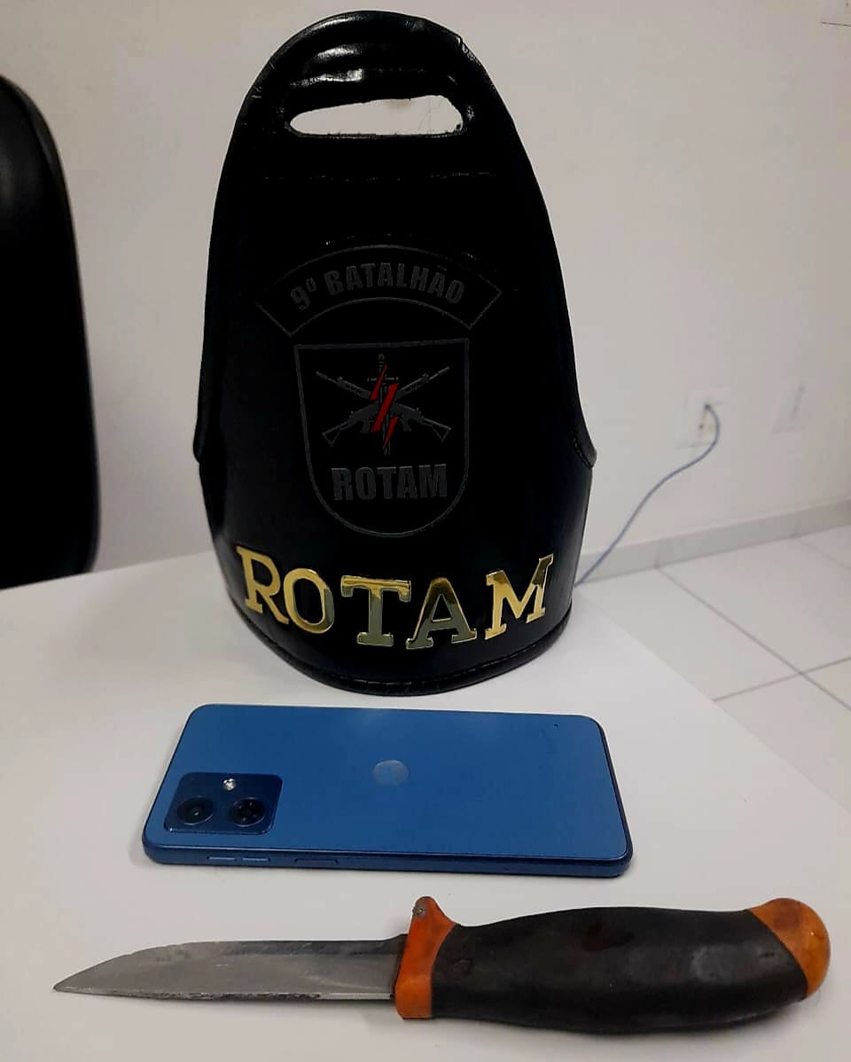 Com o abordado, de 36 anos, os policiais encontraram uma faca e o celular roubado.