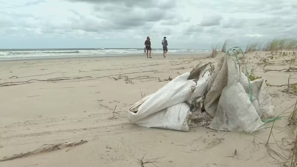 Apesar disso, na tarde desta quarta-feira, a equipe da RPC constatou que muitos sacos ainda permaneciam no paredão em Matinhos. Alguns apresentavam a inscrição “não reutilizável” e outros traziam informações relacionadas a fertilizantes nas embalagens.