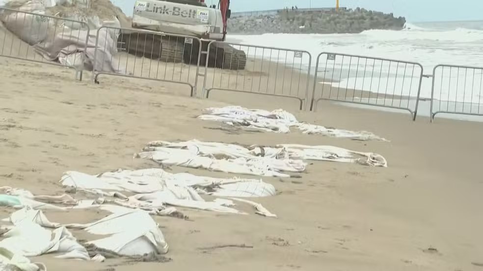 “Todos aqueles sacos que estão aparecendo ali estão sendo recolhidos e serão destinados, ou mesmo reaproveitados, porque a ideia foi fazer uma barreira semirrígida para absorver os efeitos da maré”, afirmou.