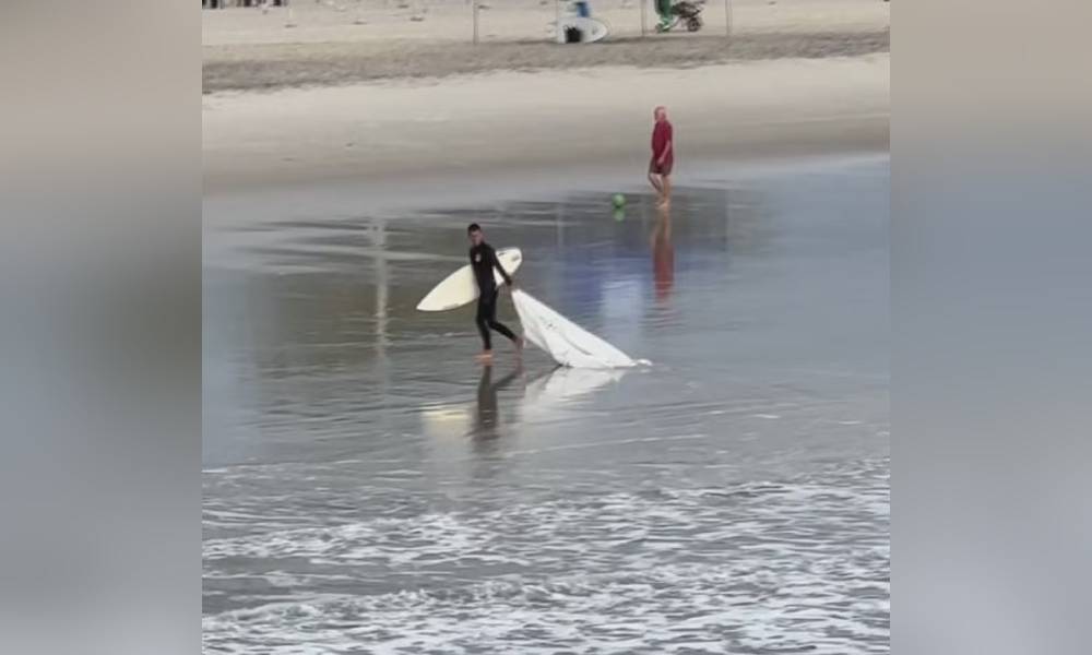 “Estava indo dar minha aula para o meu aluno. Vi aquele saco boiando e a primeira atitude que eu tive foi tirá-lo dali para poder manter o local limpo. O mar para mim é sagrado, é de onde eu tiro o meu sustento e pratico esse esporte maravilhoso que é o surf”, afirmou.