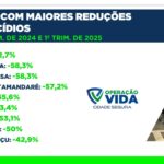 No comparativo entre 2018 e 2025, houve 205 menos homicídios (-36,7%), 8.997 menos furtos (-20,6%), 10.556 menos roubos (-74%), 1.597 menos veículos furtados (-40,1%) e 1.766 menos veículos roubados (-79,8%)