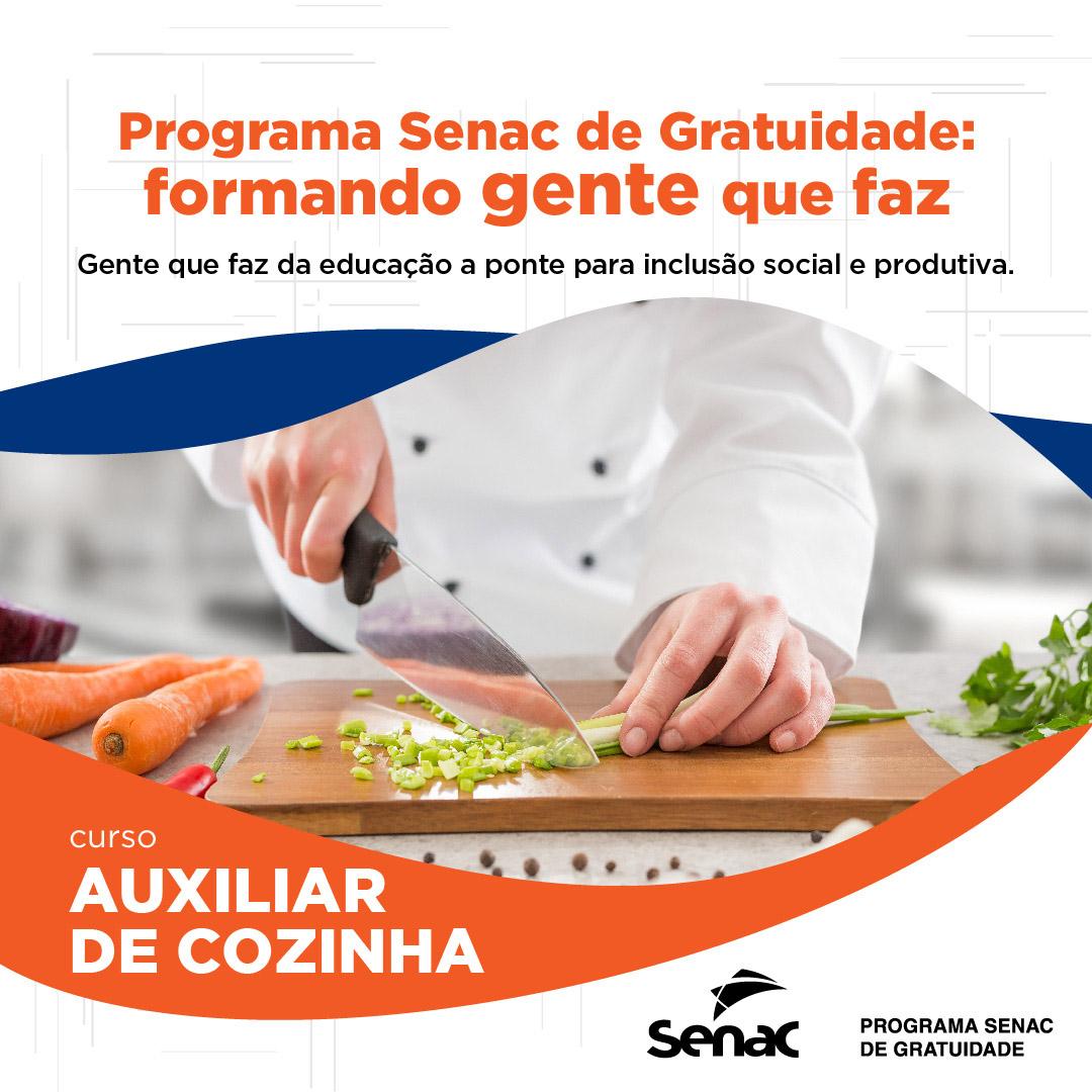 O Senac está ofertando, em Paranaguá, o Curso de Qualificação em Auxiliar de Cozinha, totalmente gratuito, por meio do Programa Senac de Gratuidade. A formação está sendo realizada no Santuário do Rocio, de segunda a sexta-feira, no período da manhã, das 8h às 12h, com inscrições abertas somente até a quinta-feira, 15.