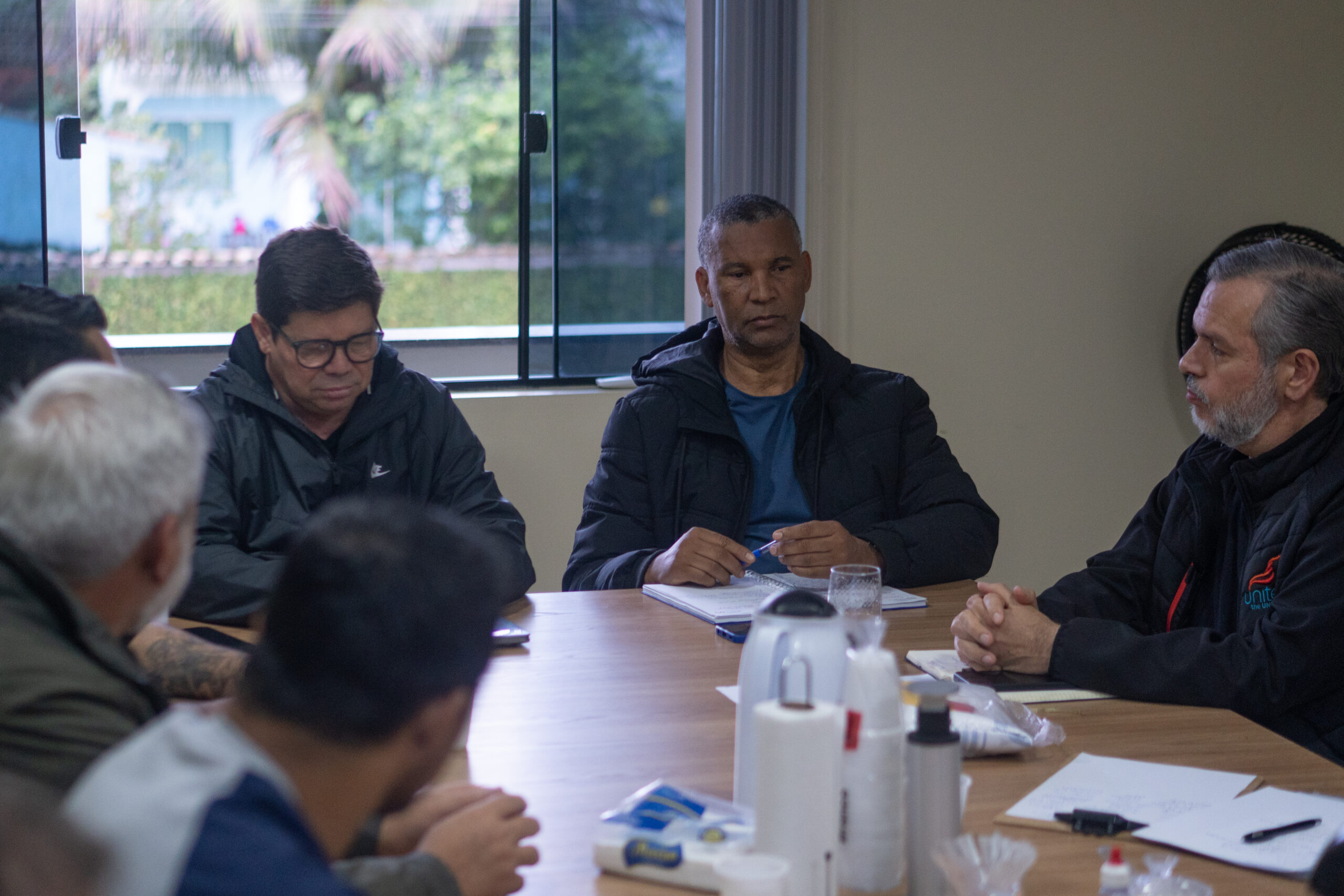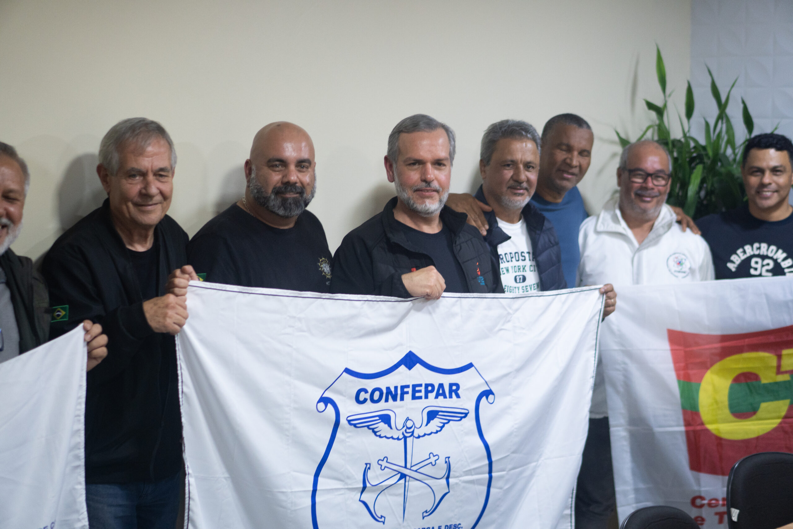 O encontro ocorreu na sede do Sindicato dos Vigias Portuários e contou com a participação de José Eduardo Antunes, presidente do Sindicato dos Conferentes de Carga e Descarga nos Portos do Paraná (CONFEPAR) e vice-presidente da Frente Intersindical, além de Alexandre Húngaro, presidente estadual da Central dos Trabalhadores e Trabalhadoras do Brasil (CTB), e outros dirigentes sindicais como Jorge Luiz Ceccon Ribeiro, presidente do Sindicato dos Trabalhadores Marítimos (SETTAPAR); Rodrigo Vanhoni, presidente do Sindicato dos Portuários (Sintraport); Eliel Teodoro dos Santos, presidente do Sindicato dos Arrumadores de Paranaguá; Eduardo Antunes, presidente da APP Sindicato de Paranaguá; Arildo Nascimento, presidente do Sindicato dos Químicos; Marcos Ventura Alves, presidente do Sindicato dos Vigias Portuários de Paranaguá; e Silvio Nunes, presidente do Sindicato dos Metalúrgicos de Paranaguá.