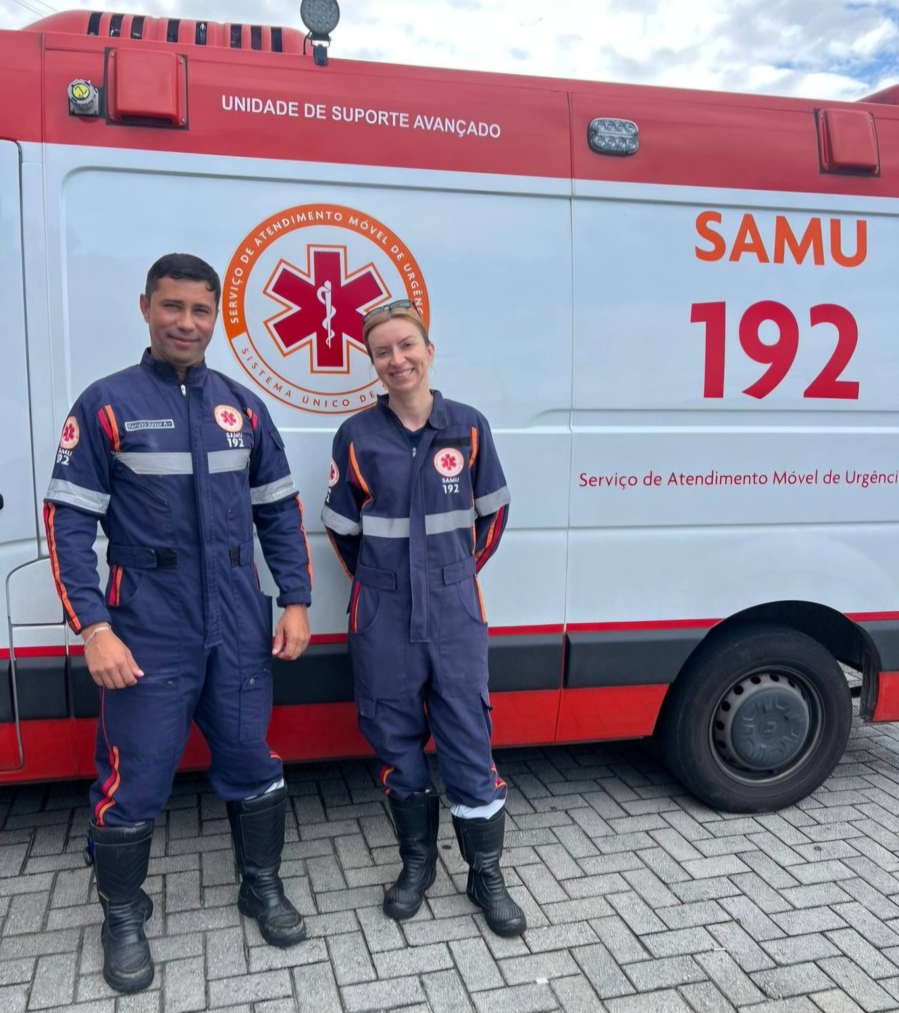 Ao chegar no endereço indicado, a equipe, o condutor Renato da Silva Júnior e a técnica de enfermagem Maria Lúcia do Rosário, visualizaram a gestante saindo de casa.