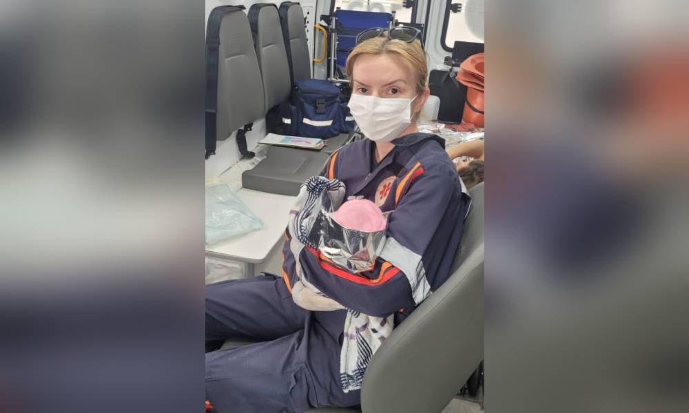Após ser colocada no interior da ambulância, os socorristas realizaram os procedimentos necessários e o parto foi realizado na frente da residência.