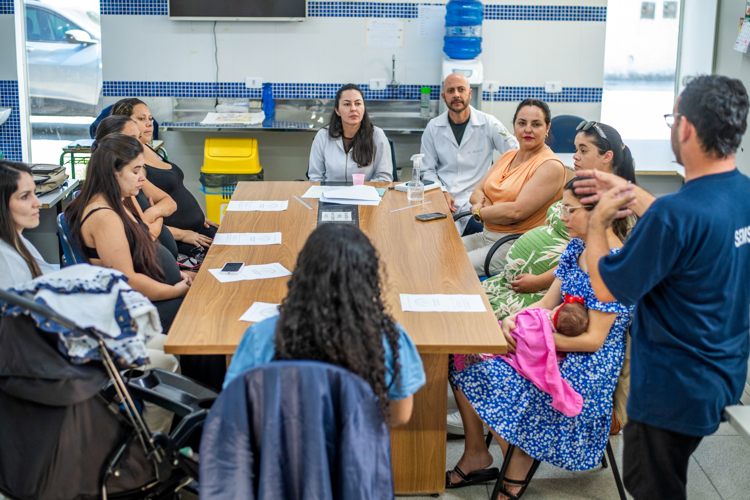 Os encontros são realizados mensalmente e abordam temas variados, como desenvolvimento fetal, alimentação saudável, direitos da gestante e prevenção de doenças.