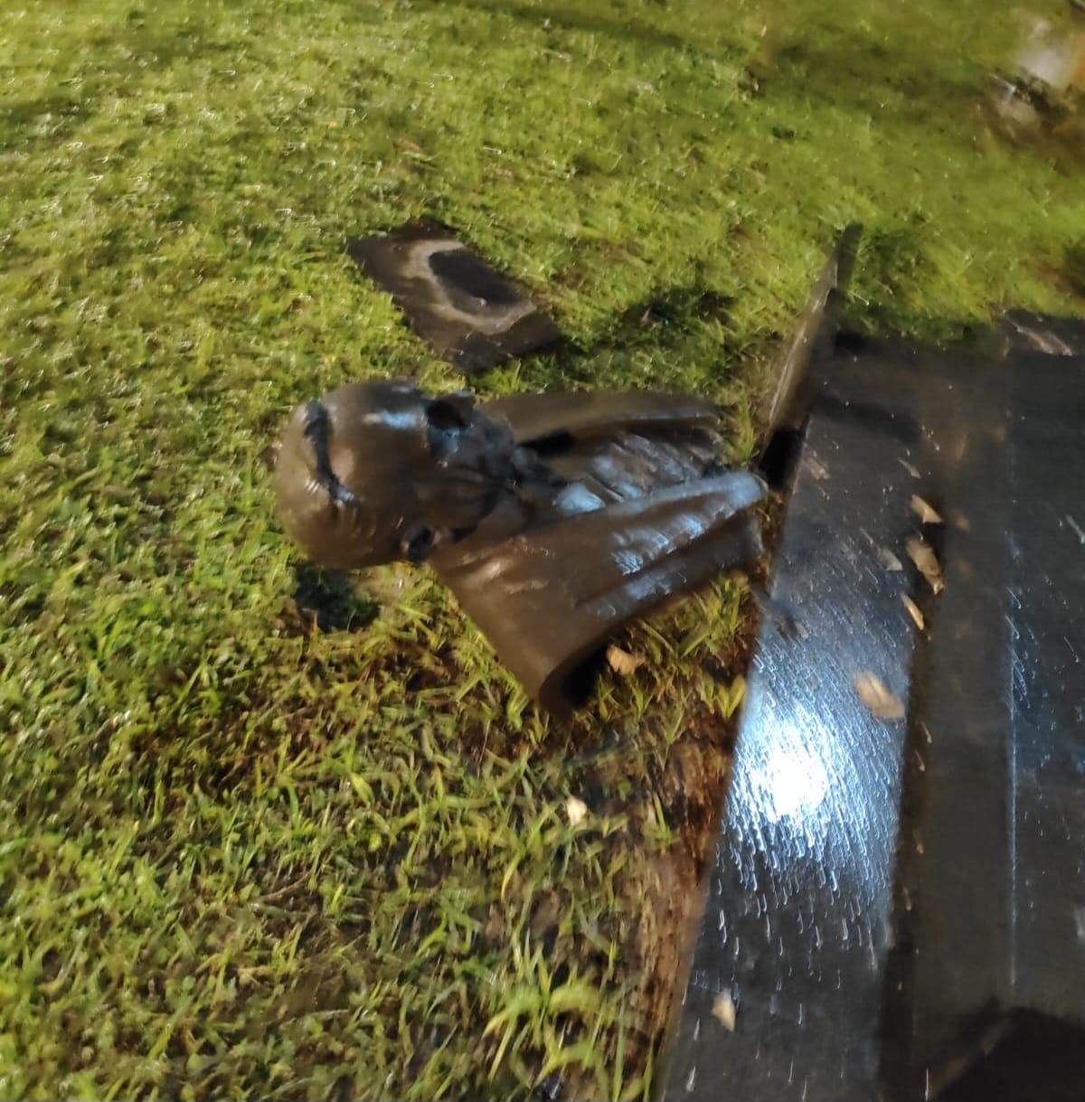 O busto estava jogado em um gramado, nas proximidades da praça.