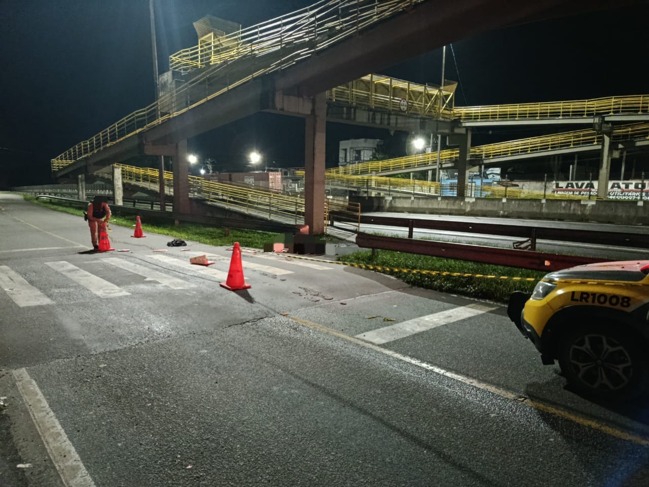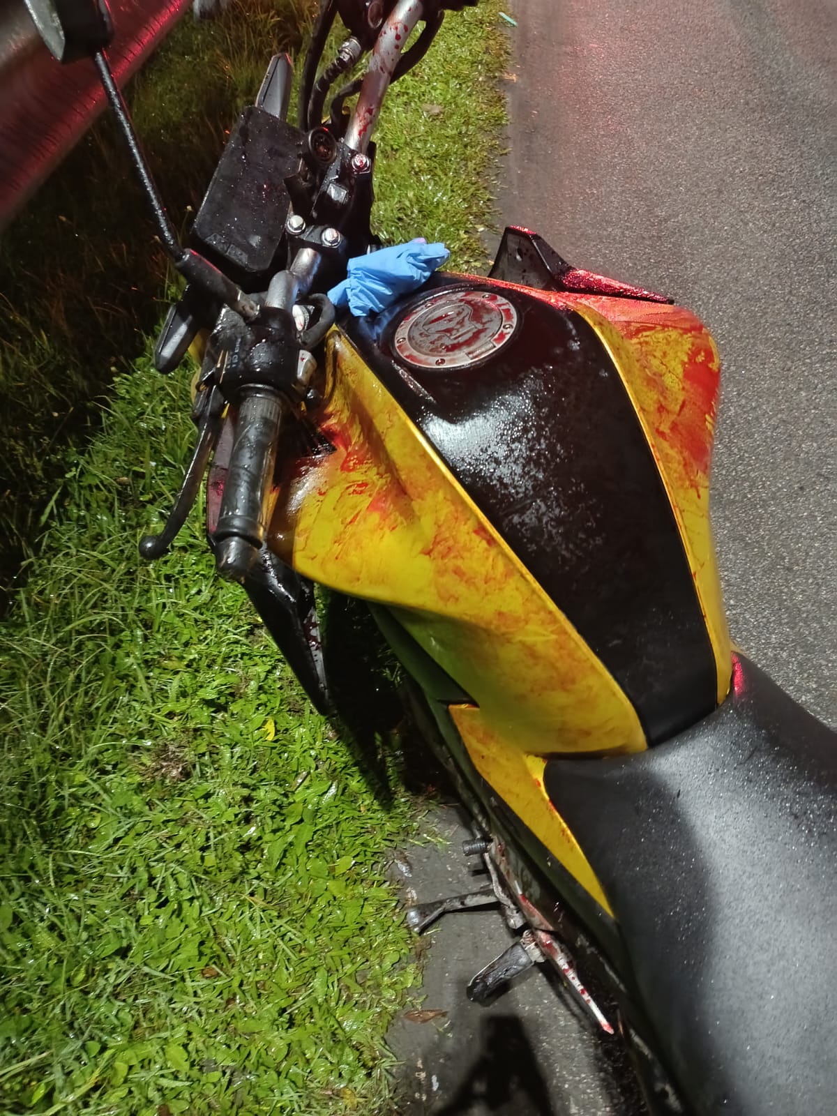 Matheus Putrick de Lima, de 25 anos, seguiu até o ponto onde entregaria uma pizza, na marginal da PR-407, rodovia das praias, ao lado da passarela de acesso para a Vila Garcia, na esquina com a Travessa Rubi, e parou a motocicleta Honda CB300F Twister, cor dourada.