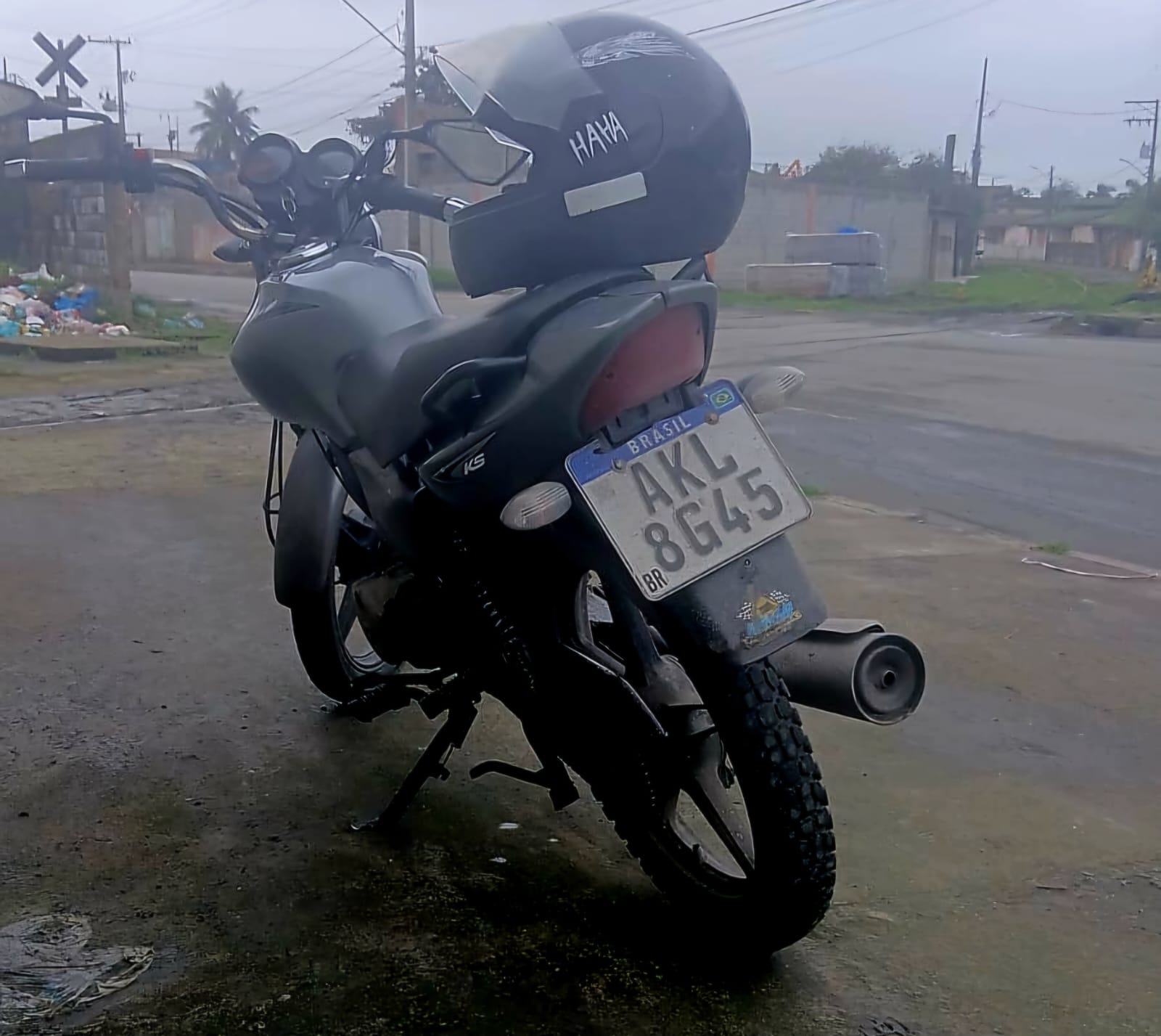 Policiais militares que atenderam a ocorrência encontraram a moto jogada em um terreno na Rua dos Manganês.